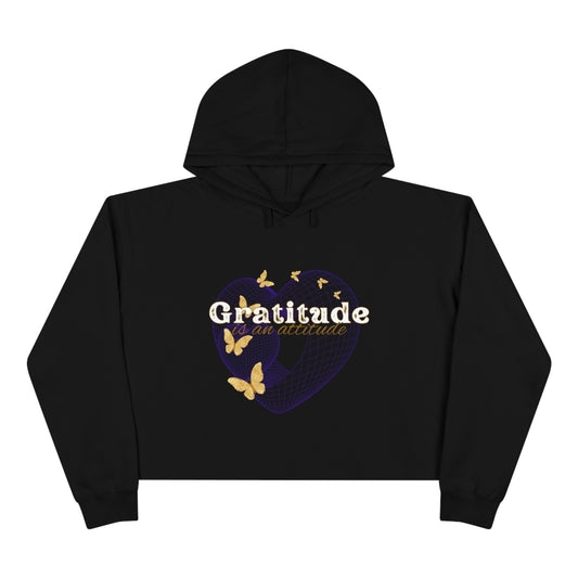 GRATITUDE is an attitude - Cotton Crop Top Hoodie Sweatshirt
