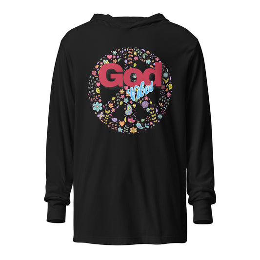 "GOD Vibes" Hooded long-sleeve graphic t-shirt